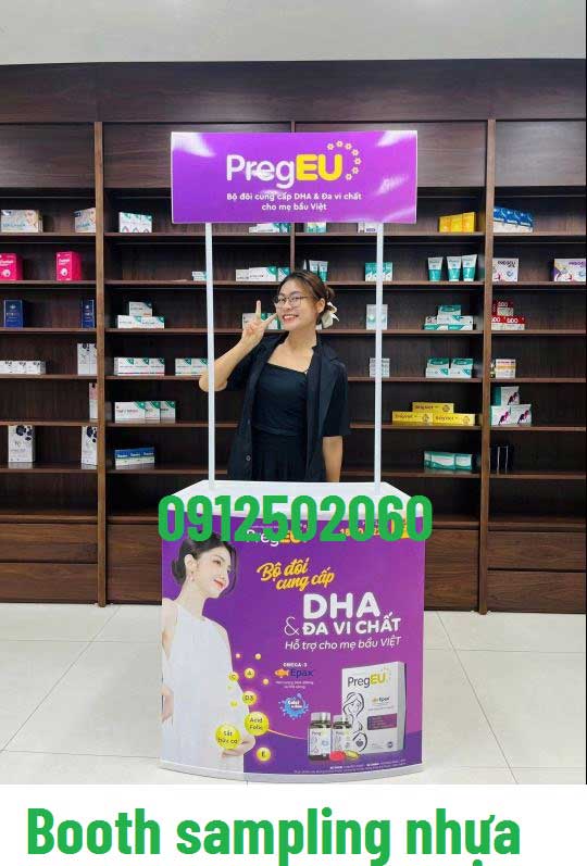 quầy phát hàng mẫu gấp gọn mặt inox cho thuê